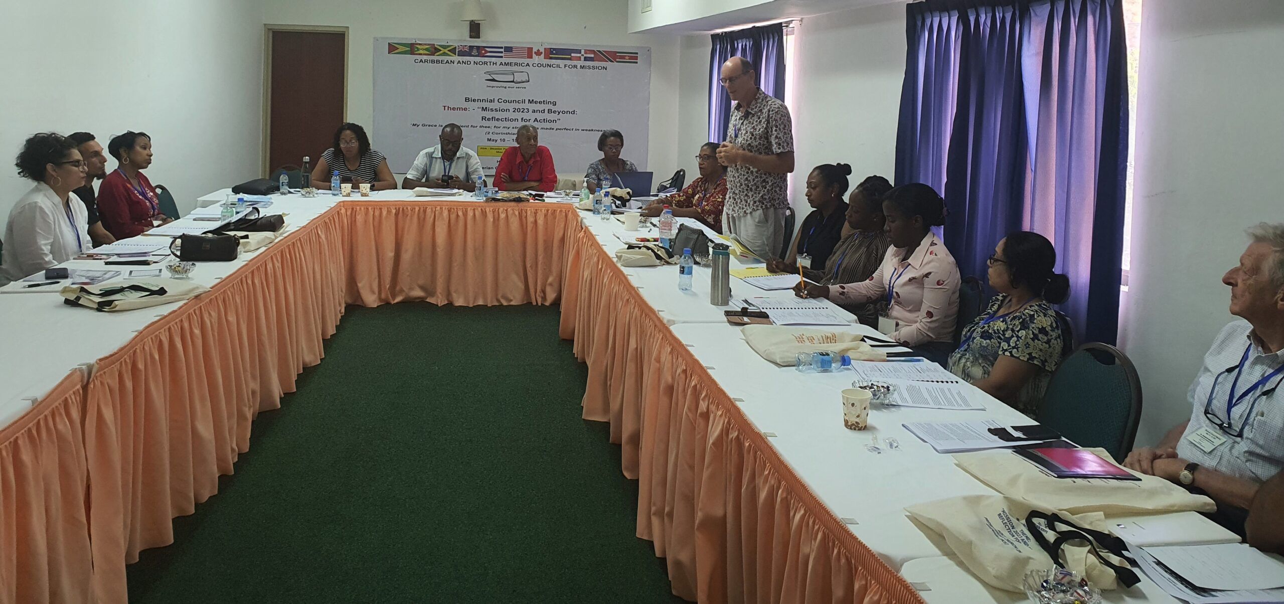 The biennial Council Meeting of the Caribbean and North America Council for Mission (CANACOM) was held in Grenada. CWM’s PIM Coordinator and Programme Associate for the Caribbean region, Mrs. Vickeisha King Burke attended the Council Meeting representing CWM and bringing greetings from the General Secretary, Rev. Dr Jooseop Keum. The meeting was hosted by the Presbyterian Church in Grenada (PCG) under the theme, ‘Mission 2023 and Beyond: Reflection for Action’ with a key focus on 2 Corinthians 12:9, ‘My grace is sufficient for thee; for my strength is made perfect in weakness’. Over 20 persons were gathered including Chairman, Rev. Carlington Keen, Education in Mission Secretary, Mrs. Jennifer P. Martin, and delegates from CANACOM’s member churches in the Caribbean and North America. CWM’s mission partner to the host church, PCG, Rev. Nigel Lindsay was also in attendance.