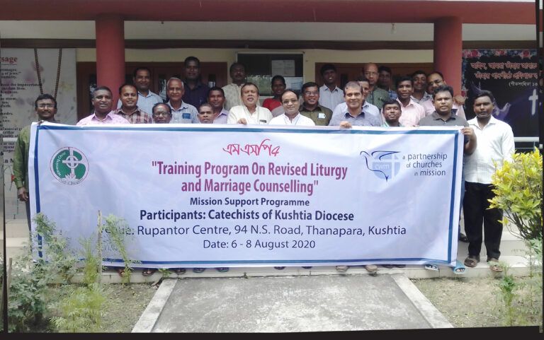 The Church of Bangladesh (COB)’s Bishop of Barishal Diocese Rt. Rev. Shourabh Pholia recently led a liturgical training workshop for the diocese’s catechists and some lay leaders, made possible by the support of CWM’s Mission Support Programme (MSP) 4. Participants were led to practise in mock sessions on issues including marriage counselling, creation care, child marriage, child labour, human trafficking, and gender-based violence and were confident about implementing the work at the parish and community levels. As and when required, they are free to develop liturgy based on social issues for lay people, bearing in mind peace and justice in the family, church and society. This training workshop was also conducted in Kushtia Diocese, under the leadership of Rt. Rev. Hemen Halder, facilitated by MSP 4 programme head Paul Malakar.