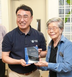 CWM General Secretary Rev. Dr Jooseop Keum presented a special gift to Elder Wang, the founder of the Life Care Society, a community outreach ministry of Singapore Life Church—which was established in 1883 by the London Missionary Society.