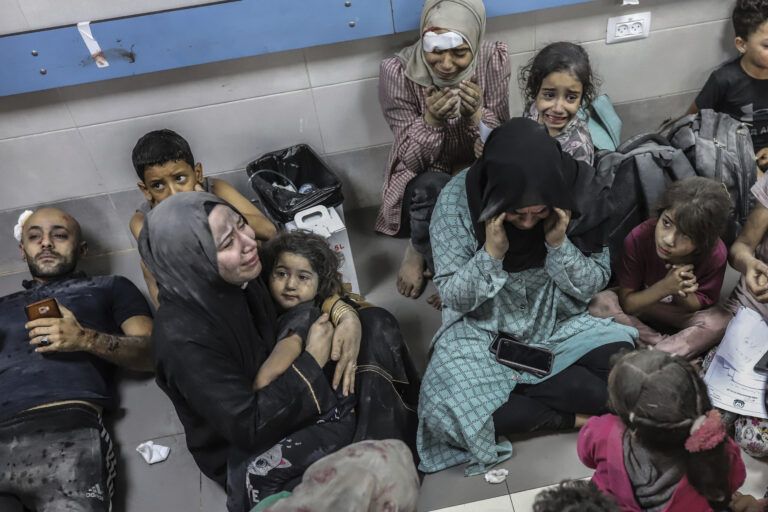 Photo: Injured’ Palestinians wait to receive medical attention at al-Shifa hospital, following an Israeli shelling on the Ahli Arab hospital, run by the Episcopal Diocese of Jerusalem, in Gaza City. According to the Gaza Health Ministry, hundreds of people were killed and injured in an Israeli airstrike on the Ahli Arab hospital that houses thousands of refugees. AP Images.