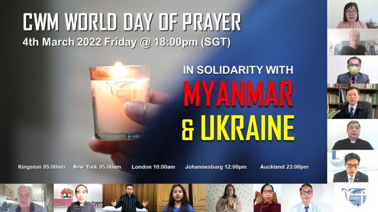 On 4th March 2022, we are expecting communities across the world to come together and participate in the CWM World Day of Prayer, a global prayer service. The 2022 theme, “In Solidarity with Myanmar and Ukraine”, is an invitation to receive prayer from friends and ecumenical partners and express solidarity with our siblings in Myanmar and Ukraine. Although we are separated physically, we are united spiritually.