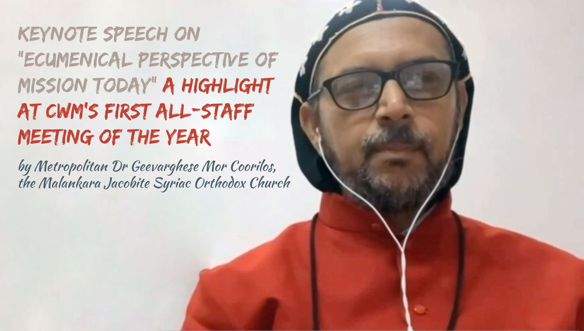 Metropolitan Dr Geevarghese Mor Coorilos, the Malankara Jacobite Syriac Orthodox Church, Moderator of Commission on World Mission and Evangelism (CWME) of the World Council of Churches and president of the World Student Christian Federation (WSCF) and a global leader in the ecumenical movement in various capacities, gave a keynote speech on “Ecumenical Perspective of Mission Today” during Council for World Mission (CWM)’s first All-Staff Meeting of the year on 13 January 4:00 P.M Singapore Time. As part of CWM staff development plan, the General Secretary, Rev. Dr Jooseop Keum introduced a bi-monthly All-Staff meeting to equip the staff with various elements including providing them missional reflections by prominent global missiologists and professional training sessions on various skills. In this meeting the global staff of CWM were edified in his lecture by Metropolitan Dr Geevarghese Mor Coorilos, a renowned missiologist. The Bishop of the Syrian Orthodox Church in India underscored two main points – subverting the colonial, imperialistic model of mission, and reimagining mission of God as missio agape (Mission as love).