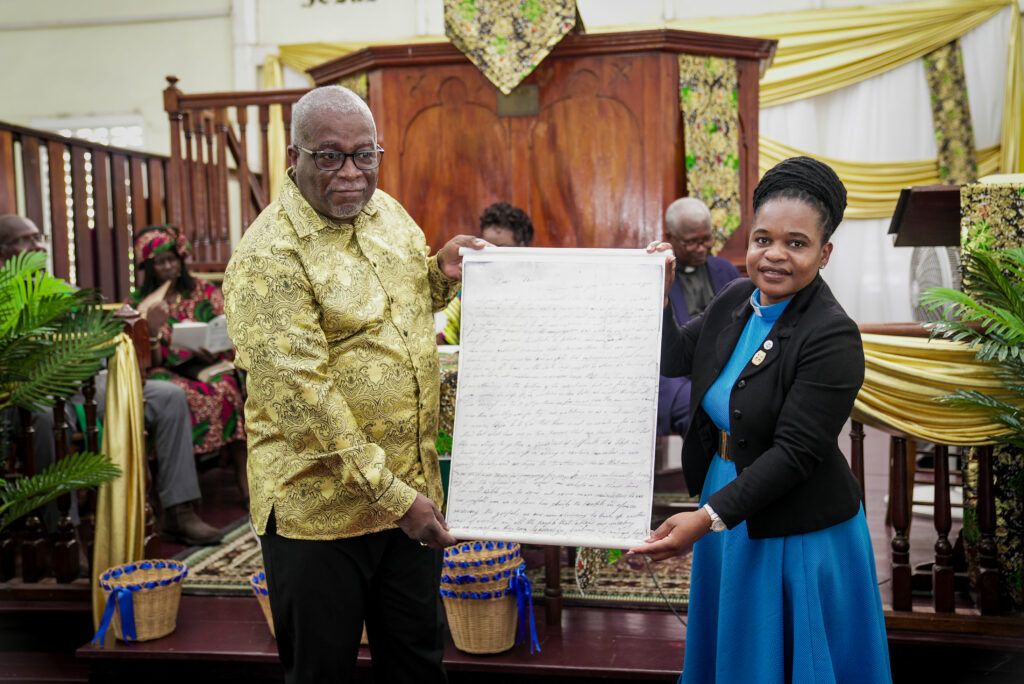 Bethel Congregational Church (BCC), which is part of Guyana Congregational Union (GCU), a CWM member church, hosted a National Commemorative Service to observe the bicentenary of the 1823 Demerara Uprising on 20 August 2023. Its distinguished guests in attendance included Guyana Prime Minister Mark Phillips, Member of Parliament Hon. Dr Karen Cummings, Leader of the Opposition Aubrey Norton, Deputy Mayor of George Town Denise Miller, Foreign Secretary Robert Persaud, Permanent Secretary Elisabeth Harper, Chair of Guyana Reparations Committee Eric Phillips, and Council for World Mission (CWM) Moderator Rev. Lydia Neshangwe.