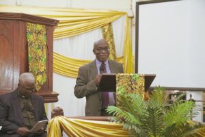 The service was lively, peppered with worship songs throughout, with highlights such as Rev. Neshangwe’s presentation of Quamina’s letter to the Guyana Prime Minister, as a symbol of shared history between Guyana, GCU and CWM. The sermon was preached from Galatians 5:1 & 13-15 by Rev. Dr Roderick Hewitt, who is Chairperson of CWM’s The Onesimus Project and President of International University of the Caribbean.