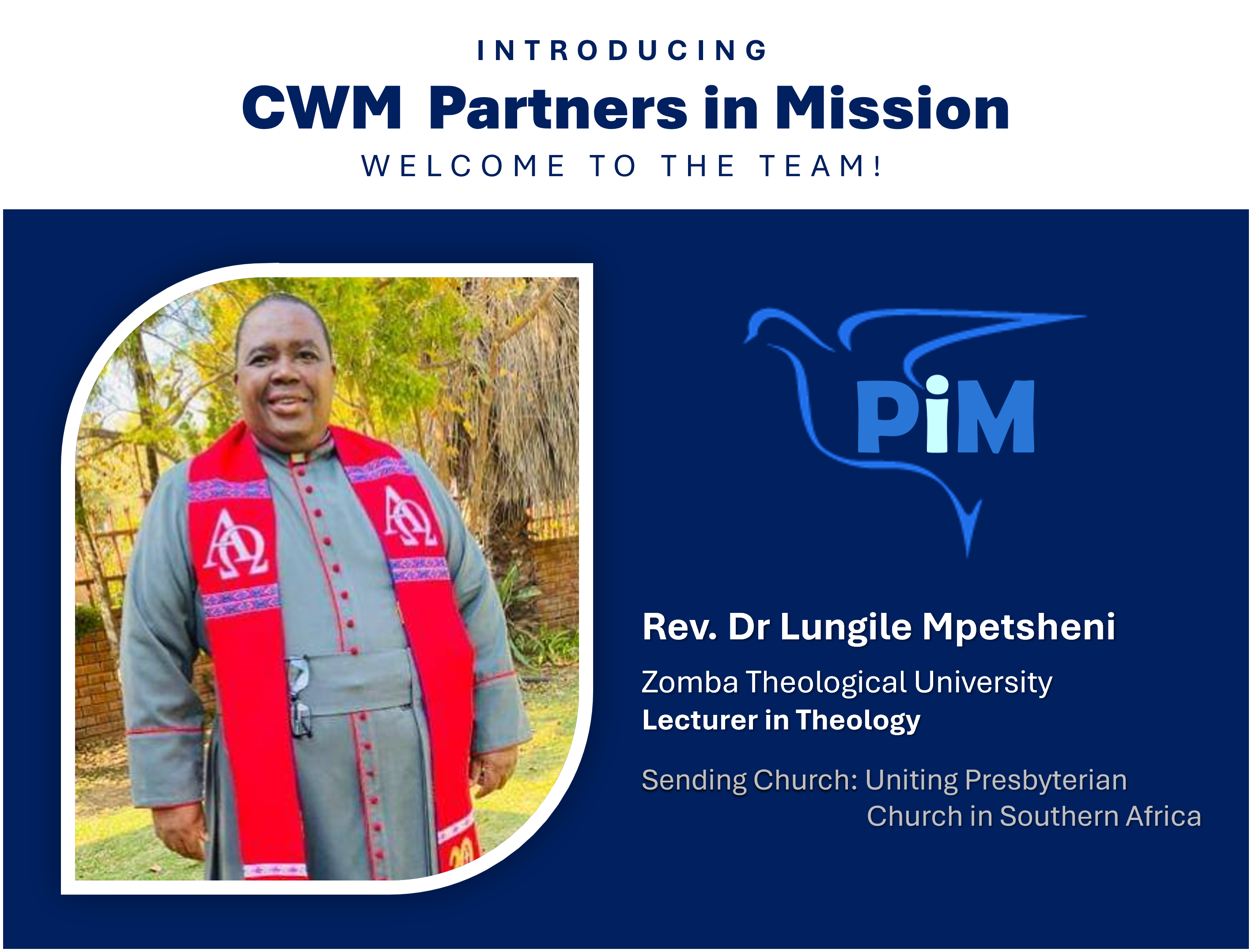 The Council for World Mission (CWM) warmly welcomes Rev. Dr Lungile Mpetsheni, who assumed the role of Partner In Mission (PIM) from 1 September, serving as a Lecturer in Theology at the Zomba Theological University (ZTU). In addition to his academic responsibilities, he will lead and oversee the University’s strategic initiative to launch an online master’s degree programme, CWM Theological Education for an Economy of Life (CWM TEEL), in collaboration with the University of Kwa-Zulu Natal (UKZN).