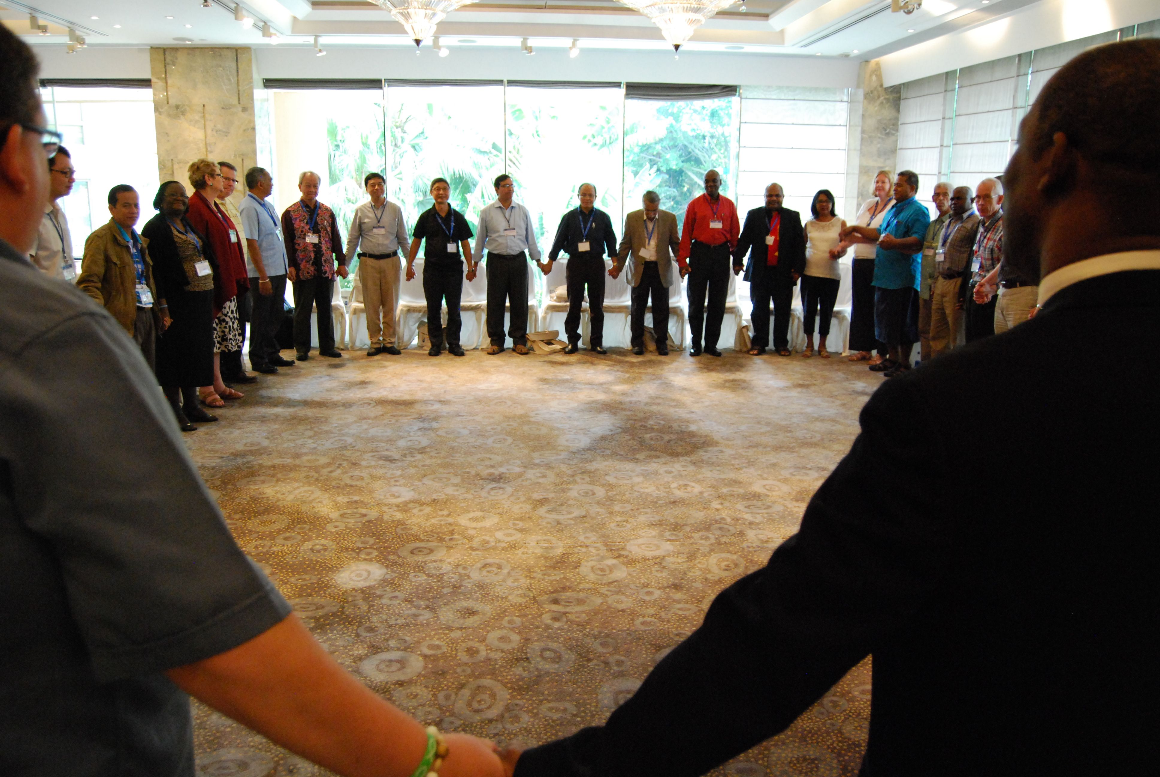 Next morning I met up with the Synod Bishop who had arrived earlier for a Council for World Mission Conference for Church leaders. Before the first session, John Proctor led the devotion on the promise, reality and fulfilment of the Holy Spirit. At Table 5 we had Bishop Bernard Siai from PNG, Lian Kip from Myanmar, Wayne Matheson from NZ, Bishop Michael Roy from Bangladesh, Roshanna Gillis from Guyana and Reupena and Dione Alo from American Samoa. Our prayers went with Reupena and Dione as they left early to return for Reupena’s sister’s funeral.