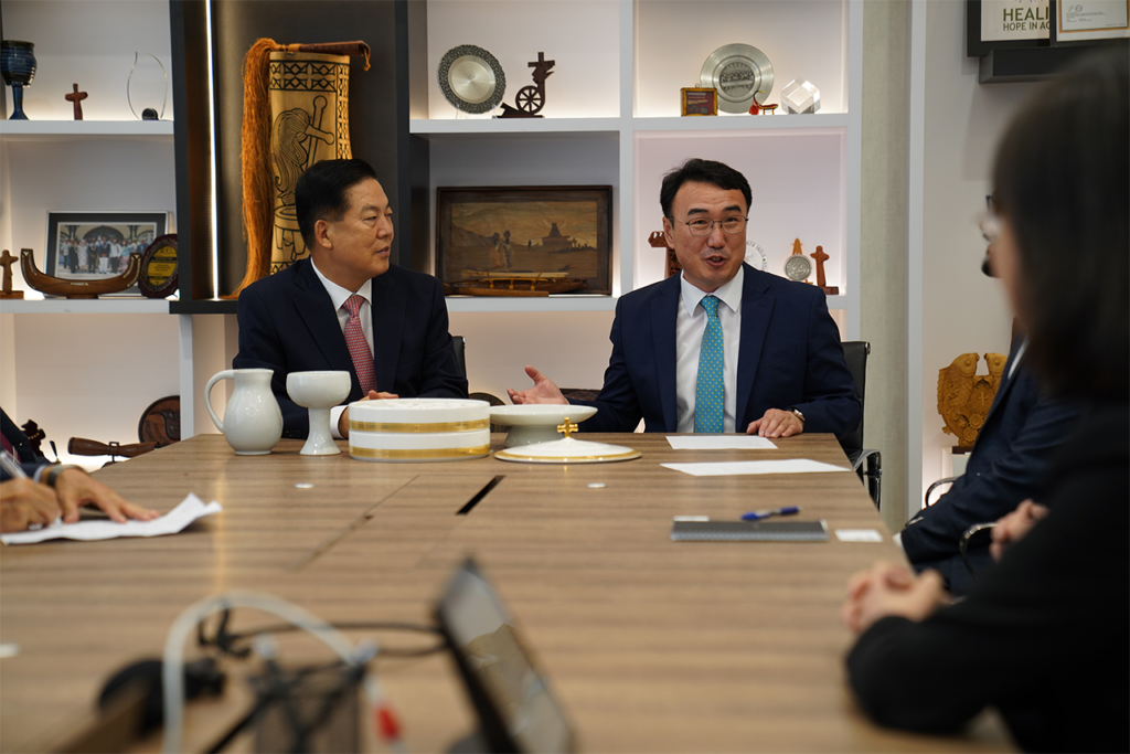 After the meeting and discussion on various missional opportunities, the PCK moderator, Rev. Dr Lee, visited the CWM broadcast studio, where he was interviewed by the General Secretary, Rev. Dr Keum. The moderator specifically spoke on the PCK vision for life-flourishing culture and ministry and issues of Korean peace and reconciliation.