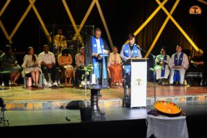 Prof. Puleng Lenka-Bula, a trained feminist ethicist with a Ph.D. in Social Ethics, kicked off the Assembly with a reflection on how hope and faith can lead to transformative action. Lenka-Bula, of Lesotho and South African descent, is also the first woman Principal and Vice-Chancellor at the University of South Africa and the third Black Vice-Chancellor since the advent of democracy in 1994.