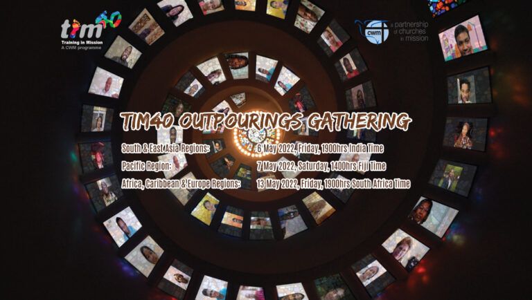 Former Training in Mission (TIM) participants from CWM member churches, partner institutions, former CWM staff, and partner communities are welcome to register to attend CWM’s “TIM40 Outpourings” meetings on either 6, 7 or 13 May via Zoom. The event title is inspired by Joel 2:28 and Acts 2:17, and is intended to check in on the dreams and visions of the TIM project and its participants.