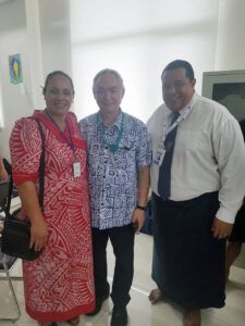 We grew accustomed to seeing our global EMTs identified by their respective medical scrubs working the hospitals and out in the field: the AUSMAT team (Australians) had their sky blue scrubs; NZMAT (New Zealanders) also had their sky blue scrubs with khaki trousers; PACMAT (Pacific Island EMTs from New Zealand) had their dark blue scrubs; EMTs from Israel had their green scrubs and many others. Countries that responded to assist Samoa in her time of need in addition to those mentioned above include the following: Fiji, Hawaii, Japan, Kiribati, Norway, Papua New Guinea, Solomon Islands, Tahiti, USA, and nations from Europe and the United Kingdom. Regional representatives from WHO and UNESCO and global bodies such as Save the Children UK and Samoa Doctors Worldwide were also key responders to the MES-19. It was amazing the passion and love these medical professionals and volunteers from around the world had for the thousands of sick Samoans they dedicated their time and knowledge to save and restore to life. The hospital wards were filled with our global helpers and one could easily have been mistaken as walking into a hospital in Australia or New Zealand or the UK, with the several foreign EMTs working the wards. Many EMTs continued to care for Samoans right up until their last shift saving lives in the hospitals.