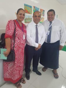New Zealand Minister for Pacific Peoples Hon Aupito William Sio (centre) received by Rev Dr Pala’amo (far right) during his visit to MHPSS unit during MES19.