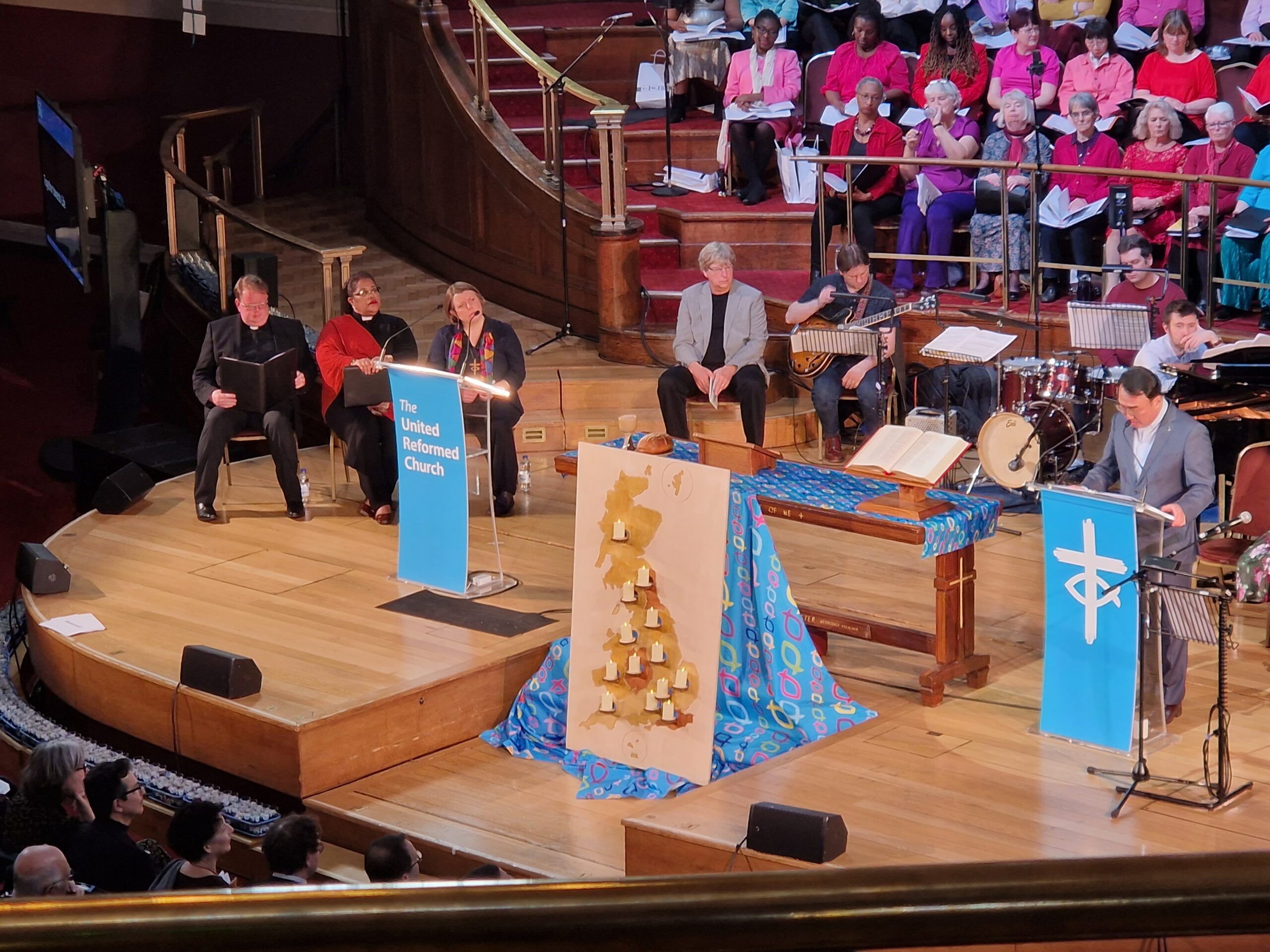 Close to the beginning of the celebratory, meaningful service, “Blessed City, Heavenly Salem“, a hymn sung at the first service of URC in 1972, was sung with candles representing each of the URC’s 13 Synods in England, Wales and Scotland placed on the map by the Synod Moderators or Synod representatives.