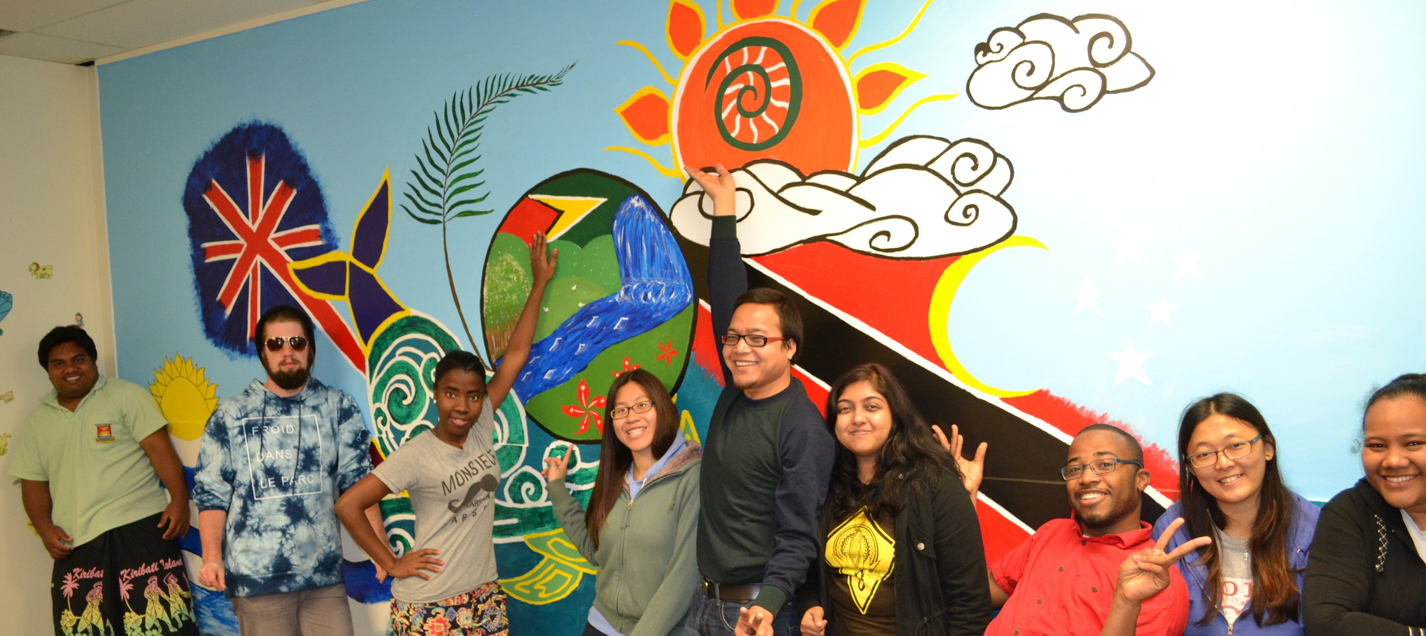 Image Caption: TIM students with the mural they painted for the children’s room at Presbyterian Support Family Works in Manurewa.  The mural incorporates the flags and images of the student’s cultures intertwined with NZ imagery.  Anne Overton of Presbyterian Support Northern says the students “have transformed the room and have blessed the many children who will visit and use it in the future”.