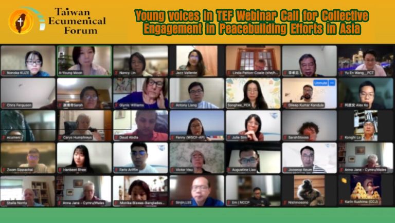 The Presbyterian Church in Taiwan (PCT) has conducted the Taiwan Ecumenical Forum (TEF) Youth Webinar on Tuesday, 26 April 2022, at 8:00 PM Taiwan time with the theme, “The Neo-Cold War: The Resurgence of the Geopolitics of Global Empires in (North) East Asia”. Over 80 participants from across the world have participated, collectively discerned, and engaged in conversations with four young panellists from Japan, Taiwan, South Korea and Thailand. Ms Nancy Lin, the Programme Secretary, Ecumenical Relations Committee of the PCT and Executive Secretary of the TEF, opened the webinar with the words of welcome.